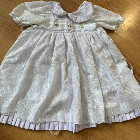 Perinteisen mallinen kastemekko, kastepuku, puuvilla ja satiininen 49,90e.