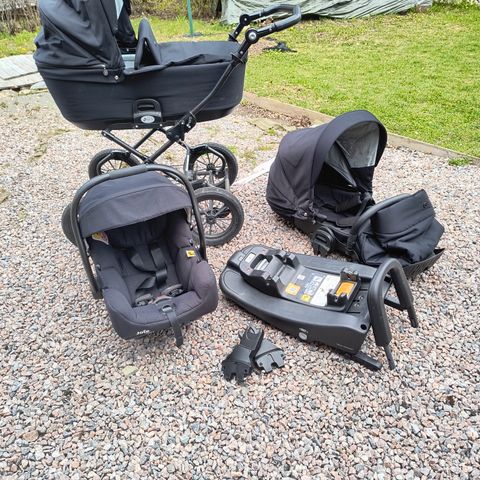 Paketissa mukana Nord Active LUX sekä Joie i-Gemm 3 -turvakaukalo + 360-pyörivä isofix-jalusta + adapterit kaukalon kiinnitykseen runkoon.