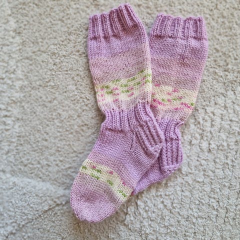 Myydään itsekudotut lasten uudet villasukat 26-32 7-velj.langasta. Konepesun kestävät. Lemmikitön ja savuton talous.