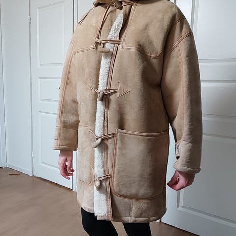 Vanha lampaannahka friitala takki. Suomessa tehty. Ei mitään käytön jälkiä. Koko on 40, mutta takki on istuva.