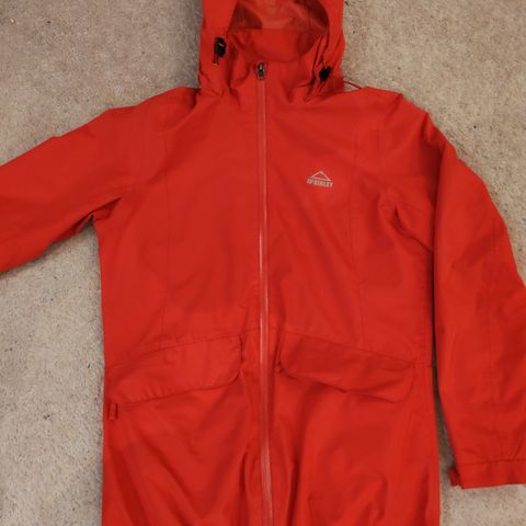 Myydään valkoinen McKinleyn (Aquamax) siisti, tuulenpitävä ja vettä hylkivä/pitävä ulkoilutakki. Takissa on verkkovuori, säädettävä huppu, säädettävät hihansuut ja helmassa kiristysnyöri. Edessä kaksi vetoketjutaskua.