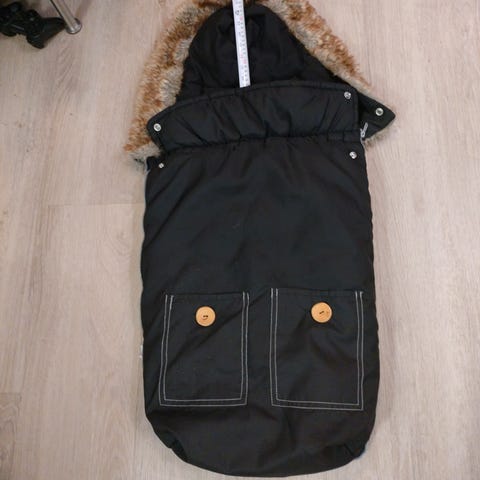 Abc Desing lämpöpussi rattaisiin tai vaunuihin. Pituus noin 90cm, alhaalta avattava, selässä liukueste, suuaukolla kiristysosa, selässä vyönreiät.