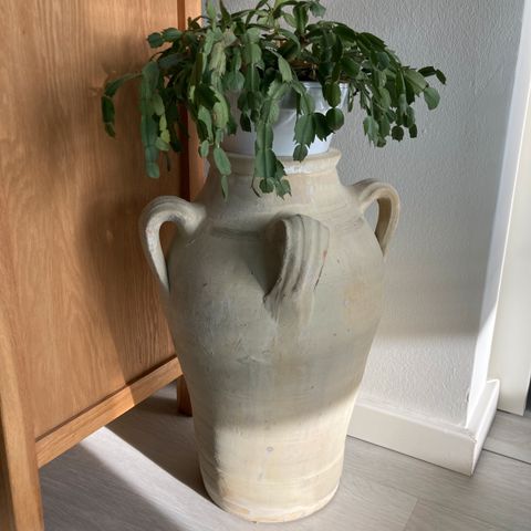 Vanha mutta todella SIISTINÄ säilynyt ruskean keltainen saviruukku - vuodelta 1957.Korkeus noin 14 cm. Lahden keskustasta.