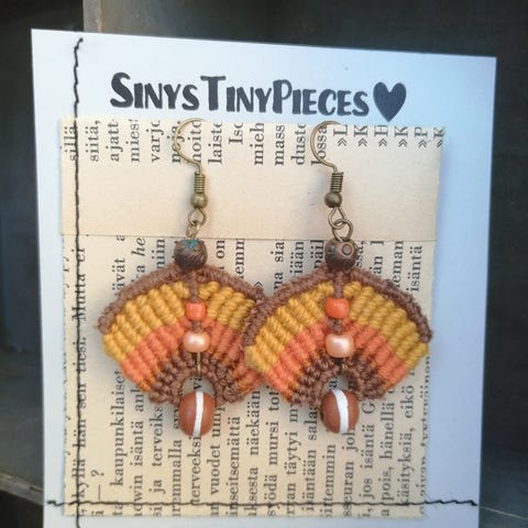 Uudet, punaiset makramee-korvakorut sydän-koristeilla. Hieman kovitettu. Renkaan halk. 3cm. Ostaja noutaa Salosta tai maksaa pk:t 2,75e