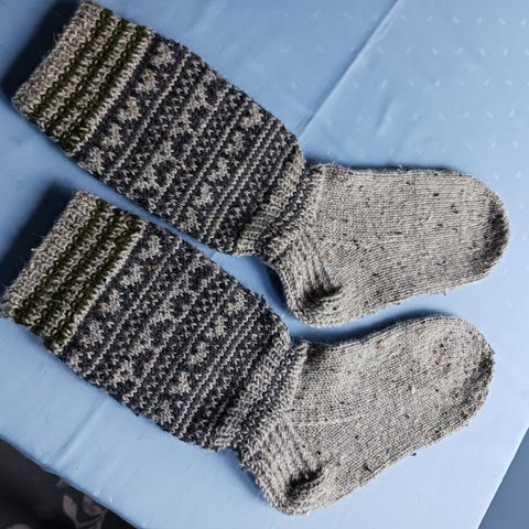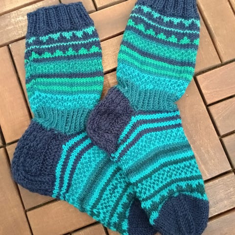 Uusia 7-veljestä langasta, vaaleanvihreät, koko41-42, siniset koko 45-46, hinta 18e/pari. Ruksatut on MYYTY