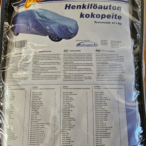 TammerS auton kokopeite henkilöautoihin. Autojen säilytyskäyttöön suunniteltu suojapeite on valmistettu Suomessa Pohjoismaiden ilmastoon.