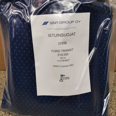 Merkkikohtainen istuinsuojasarja Ford Transit 310/350 vm. 2014-. 3 niskatukea, 1 käsinoja ja ristiselän säätö kuljettajan penkin sisäreunassa, repsikan istuinosa 2-osainen, 1+2 penkkeihin. Mittojen mukaan valmistettu Suomessa - Kestävä ja hyvä istuvuus. Istuinsuojasarja sisältää mittojen mukaan valmistetut suojat kaikkiin penkin osiin, myös niskatukiin ja käsinojaan.