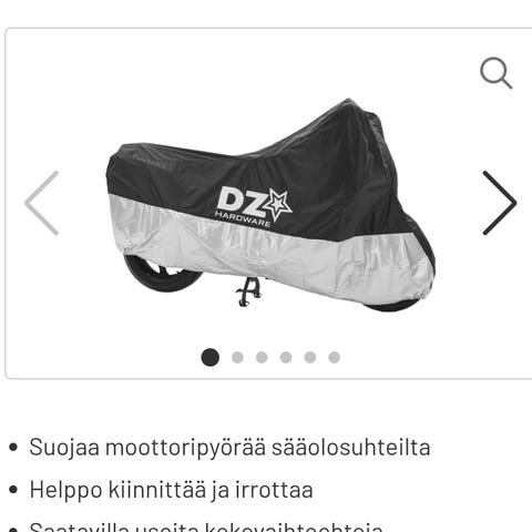 Yleismallinen suojapeite moottoripyörien suojaamiseen. Soveltuu hyvin Suomen sääolosuhteisiin, mutta on kätevä pölysuoja myös kausisäilytykseen sisätiloissa. Kiristyskuminauha etu- ja takahelmassa. Peite ei sovellu siirtokuljetuksiin. Kaksi kokoa, L ja XL