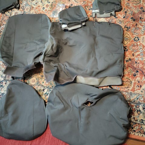 Merkkikohtainen istuinsuojasarja Volkswagen LT pakettiautoon vm. 2002-> 1+2 istuimiin, 3 niskatukea. Sisältää suojat kaikkiin penkin osiin, myös niskatukiin.
