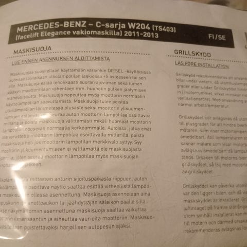 Maskisuoja Mercedes-Benz CLA Coupe vm. 2016-2017. Yläkiinnikkeet 8 x 10mm. Alakiinnikkeet 3 x 10mm.