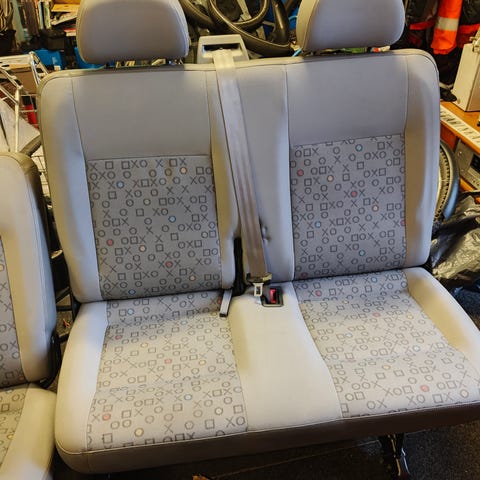 Merkkikohtainen istuinsuojasarja Volkswagen Transporter 1+2 istuimet vm. 2015-. 3 niskatukea, 2 käsinojaa kuljettajan penkin reunoilla. Sopii malleihin joissa apumiehen selkänojasta esiinkääntyvä kotelo/apupöytä tai ilman koteloa/apupöytää oleviin malleihin. Mahdollinen kotelo/apupöytä jää istuinsuojan alle, eikä ole käytettävissä. Istuinsuojasarja sisältää mittojen mukaan valmistetut suojat kaikkiin penkin osiin, myös niskatukiin ja käsinojiin. Suomessa valmistettu.