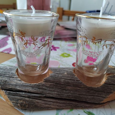 Takorautainen teline, kolmelle tuikulle. Pituus 38 cm, kork. 17 cm ja lev. 12 cm.
