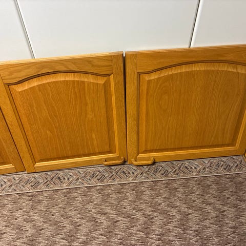 Vanhat, mutta ehjät ja toimivat kylpyhuoneen kaappien ovet. Korkeus noin 60cm, leveys noin 40cm