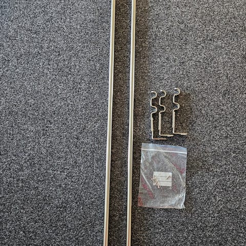Myydään 6 kpl verhotankoja, 3 tangossa koriste päässä. Minimipituus 200 cm ja maksimi 380 cm.