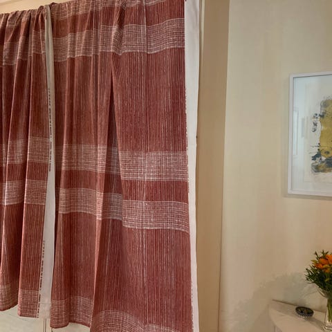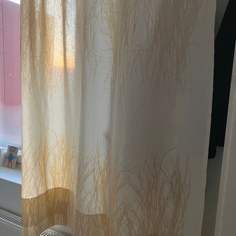 Hyväkuntoinen verho vuodelta 1983. Näyttää niin kuin ei olisi ollut ikinä käytössä. Mitat: 134 x 147 cm. Joko verhoksi tai pöytäliinaksi tai jatkojalostukseen. Postitus ok.