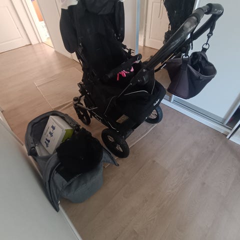 Vaunukoppa, runko, kuomu, ratasistuin, kunnon isot renkaat.