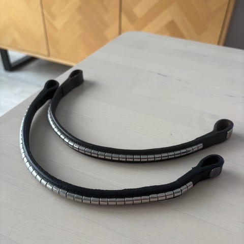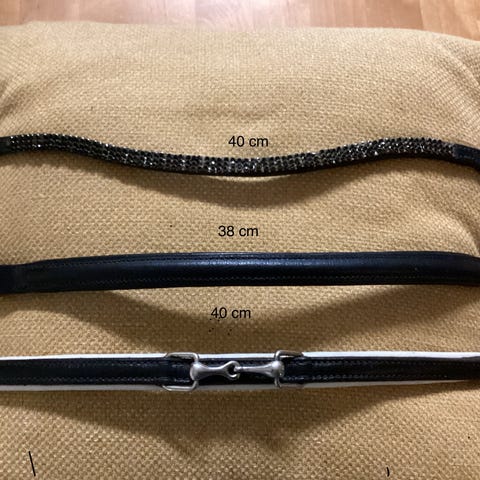 Tummanruskealla pohjalla kankaiset otsapannat, koko full. 2 samassa paketissa.