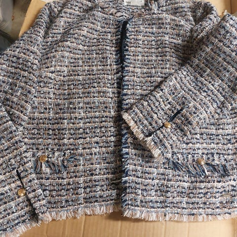 Lindex Holly & Whyte malliston tummansininen uusi jakku koko XS (laput kiinni, hinta uutena 39,99). Edessä vetoketju, taskuissa ja hihansuissa koristenepparit. Kainalo-kainalo 45 cm, olka-helma 54 cm, hiha olkasaumasta 60 cm.