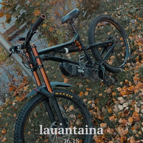 Arkajalkana en ole bikeparkeisssa käynyt, enkä kyllä oikein muuallakaan hyppinyt, eli kevyellä ajolla. Pääosin siis suhattu keskuspuistossa ja suuri osa kilsoista on ihan työmatka-ajoa asfaltilla. Vähän liian hieno laite siihen. Taakse vaihdettu astetta tymäkämpi jousi, astetta tymäkämmälle kuskille (192/115). Tästä seuraavalle kuskille kunnon pyörä, joka toivon mukaan ajaisi tällä niinkuin minä suunnittelin ajavani. Säilytetty lämpimässä varastossa, nyt parvekkeella ja akku sisällä.