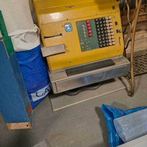 Vanha -70 luvulta, saksasta tuotu kassakone, kovaa muovia.