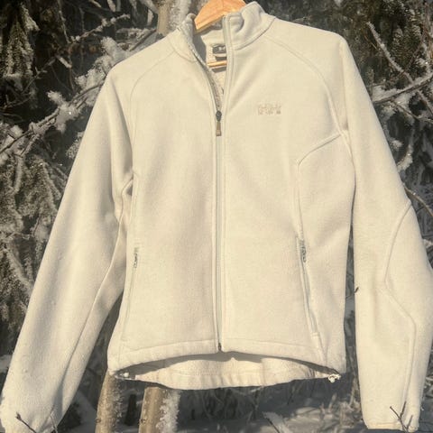 Myydään Helly Hansenin fleecetakki kokomerkinnällä L, mutta menee ennemmmin 38-40 tai M kokoiselle. Hyvin lämmin takki, jota voi käyttää kerrospukeutumisessa tai ihan yksikseen hieman lämpimämmillä keleillä. Takin pinta on sileää teknistä materiaalia ja sisäpuoli on fleeceä. Ylhäällä kuviot on painettu kankaan pintaan. Erittäin hyväkuntoinen takki, jolle ei montaa käyttökertaa tullut. Kunnossa ei mitään huomauttamista. Savuton ja karvaton koti.