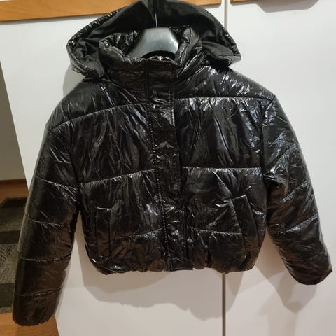 Ruskea vanutäytteinen ja vuorellinen toppatakki. Vetoketju edessä ja hihan suissa/ranteissa. Taskut edessä. Olka-helma 55 cm.