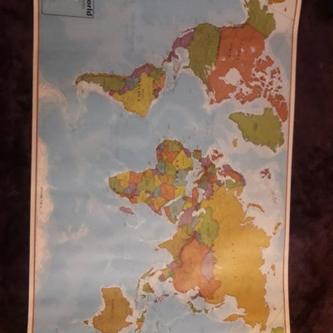 Go Away, Go World, It's A Map, on musta, kun vierailet uudessa maassa voit raaputtaa maan valkoiseksi. Koko 70 x 50 cm.