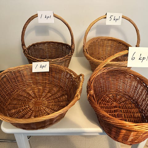 4kpl 60cm ja 4kpl 50cm leveään kaappiin pajukoreja.