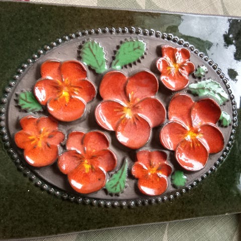 Vintage TEKT keraaminen seinälaatta taulu kukka nro 2