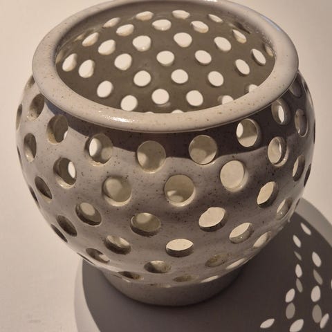 Aivan superkaunis esine tämäkin, ja monikäyttöinen - voi pitää kynttilää, voi pitää kukkaruukkua tämän päällä tai pitää jalustana jollekin kauniille koriste-esineelle, tai tarjoilla tästä heldelmiä, makeisia jne. Postitus ok.