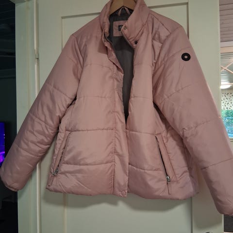Musta Future kevyttoppatakki 100% polyamidia,vaaleanpunainen vuori 100% polyesteriä.Koko XL.Vetoketjulliset taskut.