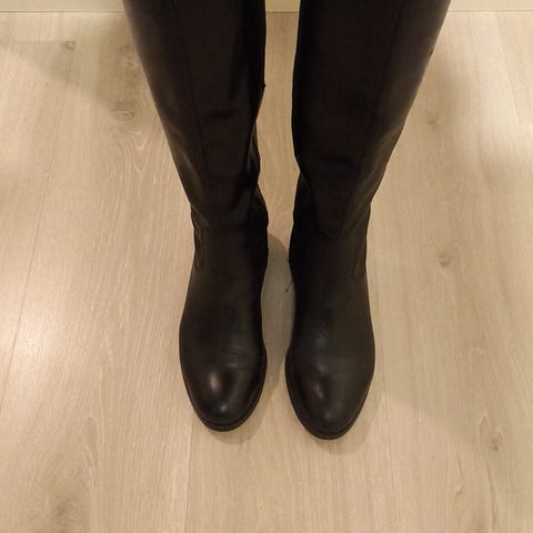 ASKEL, Naisten pitkät nahkasaappaat, koko 36 (5.5). Väri : musta. Varren korkeus 34cm. Korolliset (4cm). Muutamia kertoja käytetty. Myydään koska koko ei sovi. Valmistettu Suomessa.