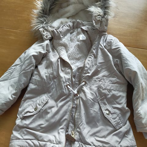 Myydään lasten talvitakki/parkatakki. Irrotettava huppu tekokarvareunuksella. Väri khakinvihreä. Vyötärönaru tahraantunut, muuten oikein siisti.