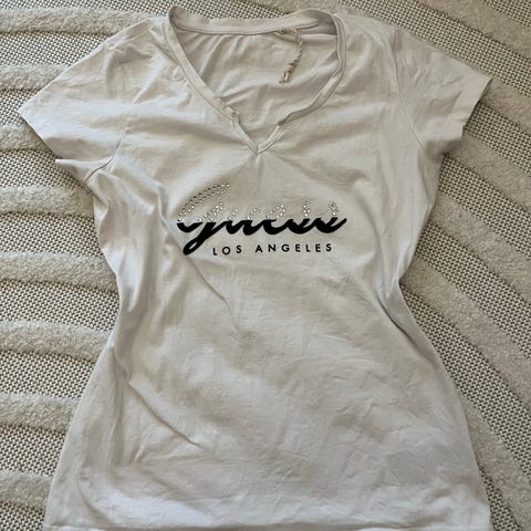 Musta Guessin t-paita, lapussa koko XL, mutta vastaa paremmin M. Ei käytetty.