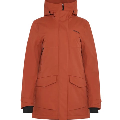 Oikea väri murrettu oranssi (näkyy viimeisessä kuvassa, joka didriksonin verkkosivuilta), perinteisen mallinen parka, jossa pehmeä ja lämmittävä pileevuori selkämyksessä ja hupussa. Vyötäröllä leveä kiristysnyöri, kaksi isoa etutaskua ja ylimääräiset aukot sivuilla käsien lämmittämiseen sekä tasku tuulilistan sisäpuolella. Korkea kaulus, jonka saa vetoketjulla/napitettua ylös asti.