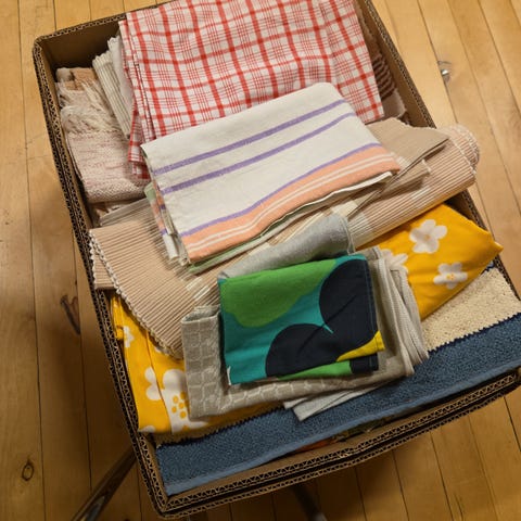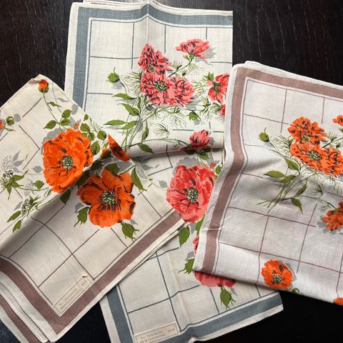 Seitsemän pellavapyyhettä. Yhdessä punainen monogrammi ER (?), toisessa IH, kolmannessa AP, neljännessä LS, viidennessä AS ja kaksi ilman monogrammia. Hinta 4e/kpl.