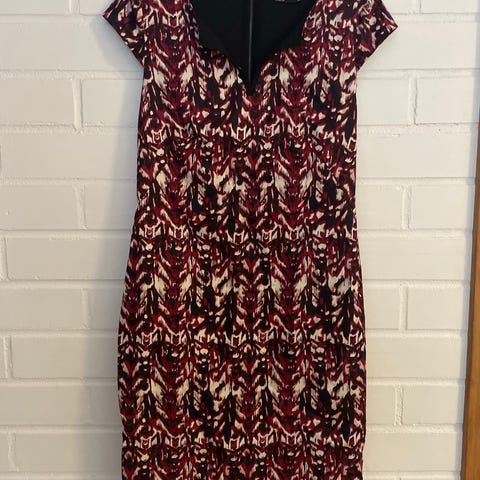 Lyhyt, polven yläpuolelle ulottuva, hohtavakankainen mekko. Koko 34. Helman alla tyllikangas. Vetoketju sivussa. Merkki Chic Femme.