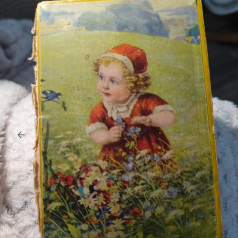 Laatikon kahdessa kulmassa hieman rikkoa ja paikoin tahraisuutta. Koko 21 x 10 x 4 cm.