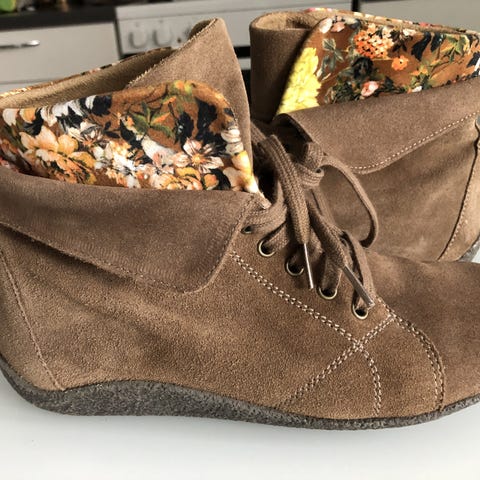 Myydään Impuls-merkkiset mokkaset korkokengät. Sopii pienille pakkasille. Ihanat mokkakengät. Kangas lähtenyt saumasta jo heti alkuun ja noussut alhaalta (näkyy kuvassa).