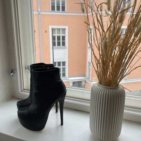 Nellyn harmaat korkeakorkoiset nilkkurit platformilla koossa 38, käyttökulumaakin on, mutta yleisilme siisti ✨