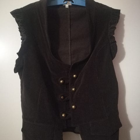 Myydään samettiliivi mustaa vakosamettia, napit ja koristeet sileää samettia, kuminauha vyötäröllä, lähes käyttämätön, uniikki.