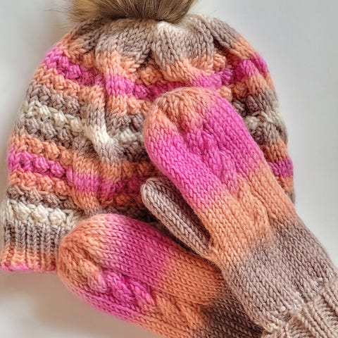 Vaalenapunainen ja beige tupsupipo 7e
