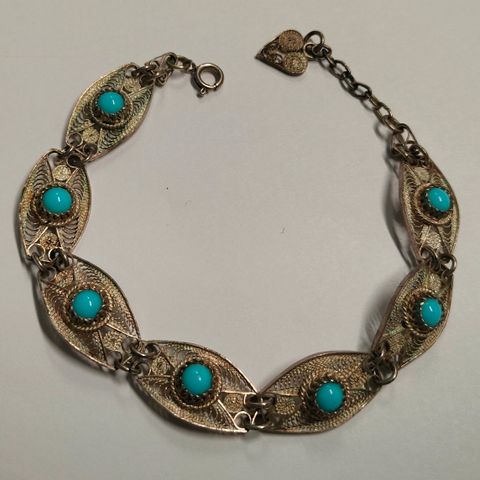 Koru on ilmeisesti hopeoitu koska en löytänyt leimoja. Korussa käytetty erivärisiä kiviä. Kuva 3 koru alapuolelta. Paino 30 g ja pituus 19 cm. Nouto Tesomalta sovitusti tai postitus jolloin postikulut ostajalle, myös ToriDiili käy.