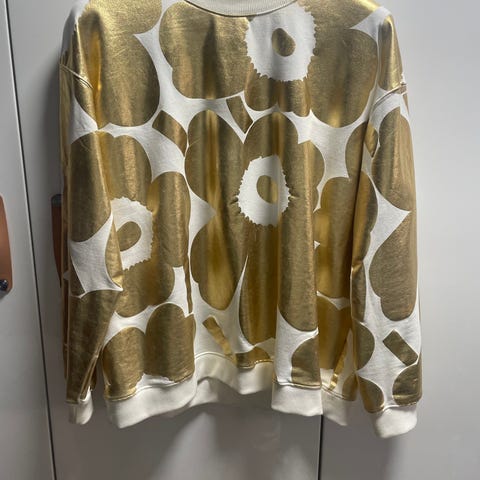 Upea Marimekko college Kerria eli kultainen unikko -painatus, mustalla pohjalla. Koko xs, mutta reiluhko. Menee hyvin myös kokoa s käyttävälle. Ehjä ja siisti, ehkä aavistus kulumaa hihoissa (ks kuva). Koirakoti. Nouto tai postitus.