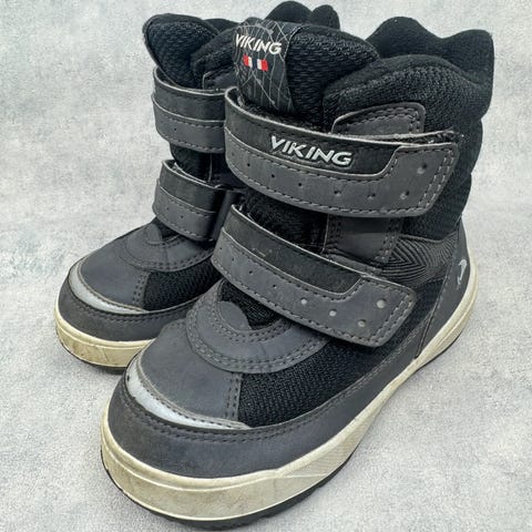 Myydään Viking gore-tex talvikengät 26. Tarrat voisivat pitää paremmin, mutta ”pysyvät tarrassa” ja kengät ovat muuten jämäkät ja ehjät, joten menevät mielestäni vielä, huomioitu hinnassa.