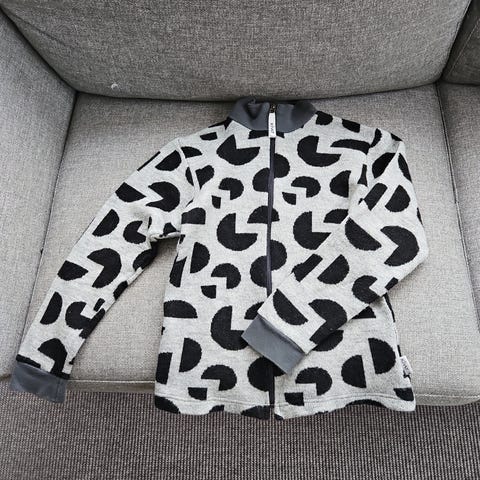 Pehmeä vetoketjullinen takki. Huppu on topattu ja irrotettava. Hihansuissa joustavat resorit. Materiaali ei jousta.