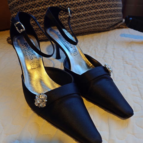 Kuuluisan madridilaisen kenkätehtaan valmistamat piikkikorkokengät, tunnettu kauneista kirkkaista väreistä. Näitä ei enää saa mistään.