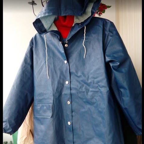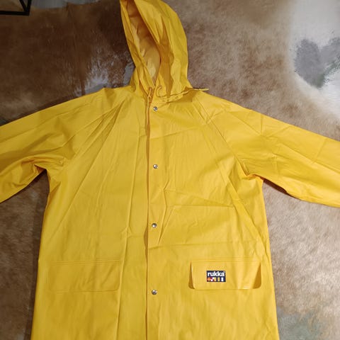Rukka sadetakki. Harvinainen väri eli Vaaleansininen. Unisex malli. Kokomerkintä M. Niska-helma 77cm, kai-kai 62cm, kainalo -hihansuu 56cm. Hyvin vähän käytetty perussiisti, jotain pientä normijälkeä. Helman kiristysnarun toinen puoli pitää pujotella uudestaan kun toinen puoli näköjään "karannut", se jää ostajan tehtäväksi. Ei sovituksia, ei toridiiliä, en tingi! Nouto tarkka aika etukäteen sovitusti ma-pe kl.10-16 hki 88 tai postitse (matkahuolto/posti) pakettina.