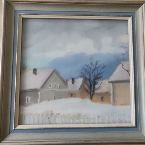 Arvostetun Viggo Wallensköldin maisemamaalaus vuodelta 2015. Teoksen nimi: Autiotalo, Marielund. Koko 85x38 cm. Signeeraus takana.