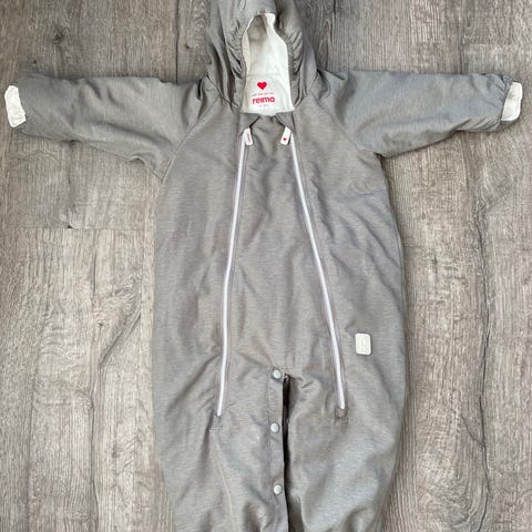 Myydään kuvan vaalean harmaa Reima kevyttoppapuku, koko: 68-74cm.